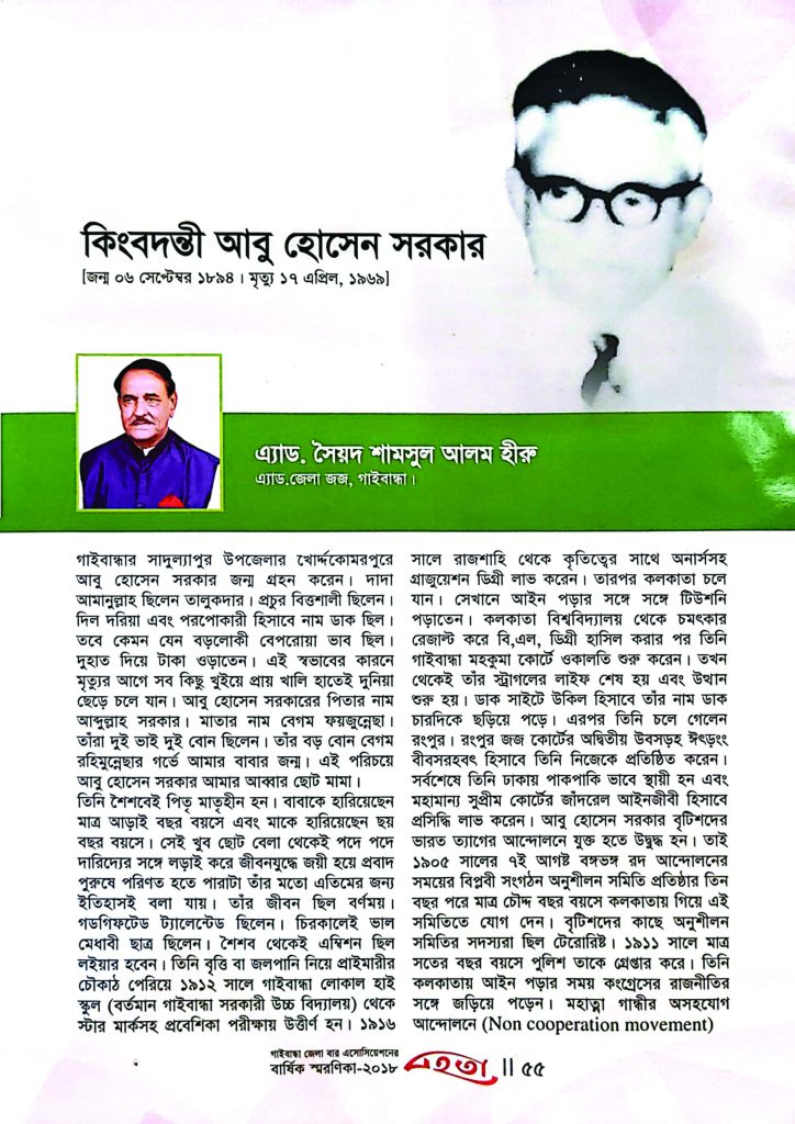 • বিজ্ঞ আইনজীবী ইসহাক উদ্দিন মন্ডল সাহেবের ইন্তেকাল
